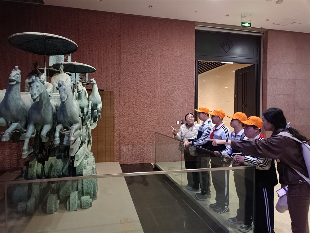 博物館內(nèi),生動的“海岱齊風”青銅浮雕壁畫引領(lǐng)同學們穿越古今,身臨其境領(lǐng)略齊風韶韻。隨后,同學們參觀了以齊國故都八百年歷史為主題的秦漢齊風、稷下學宮、余韻傳承、稷下學宮等多個展廳,孩子們親身感受齊文化的獨特魅力和深厚底蘊。在觀看展品的過程中,每個孩子的眼睛里都閃爍著好奇的光芒。