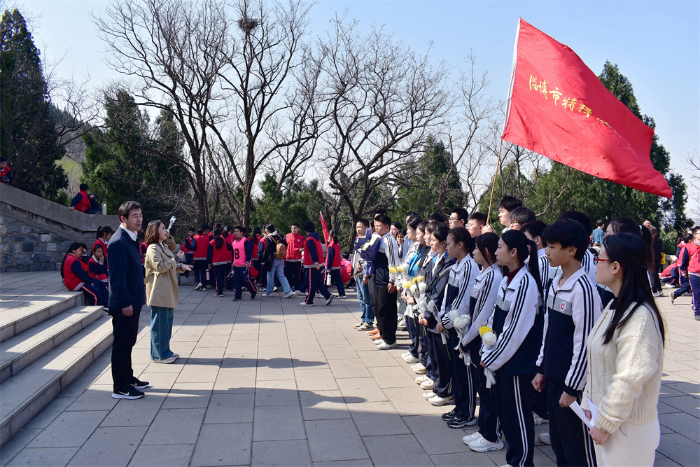 在敬獻花束環(huán)節(jié),全體師生手持鮮花,緩緩走向烈士墓前,將鮮花輕輕擺放,以實際行動表達對先烈的緬懷與感恩。