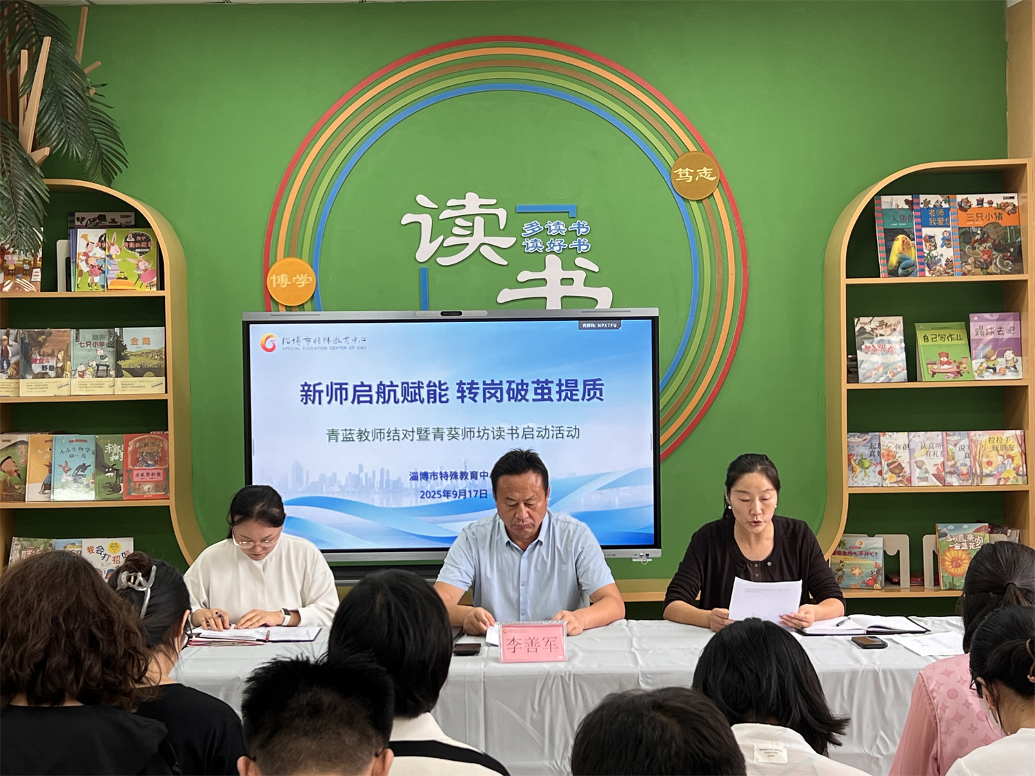 ??為進(jìn)一步加強(qiáng)新時(shí)代教師隊(duì)伍建設(shè),搭建互助成長平臺(tái),營造濃厚的讀書氛圍,9月17日,淄博市特教中心舉行“新師啟航賦能 轉(zhuǎn)崗破繭提質(zhì)”青藍(lán)教師結(jié)對(duì)暨青葵師坊讀書啟動(dòng)活動(dòng)。學(xué)校分管領(lǐng)導(dǎo)、新教師、轉(zhuǎn)崗教師及青葵師坊成員共計(jì)40余人參加活動(dòng)。