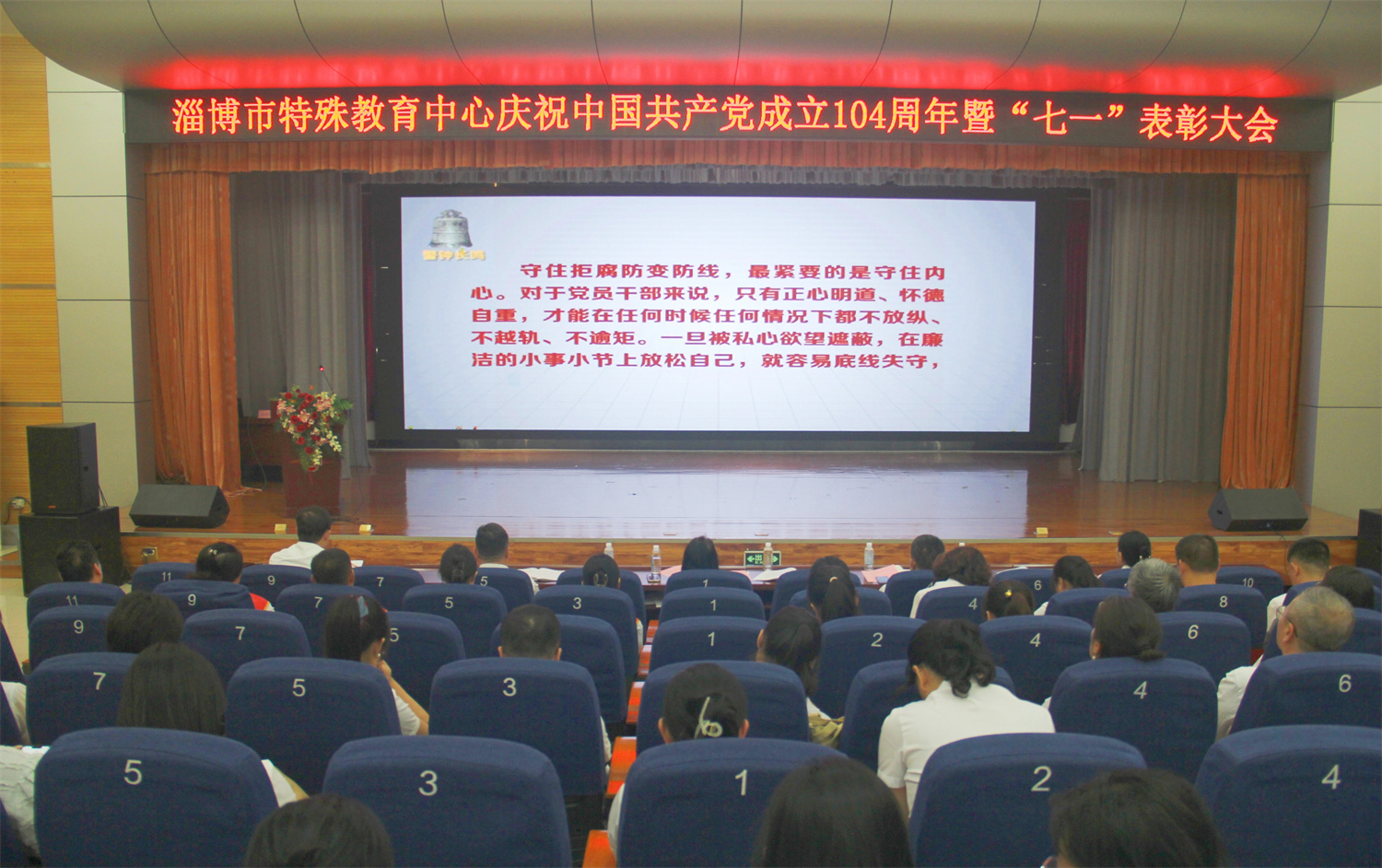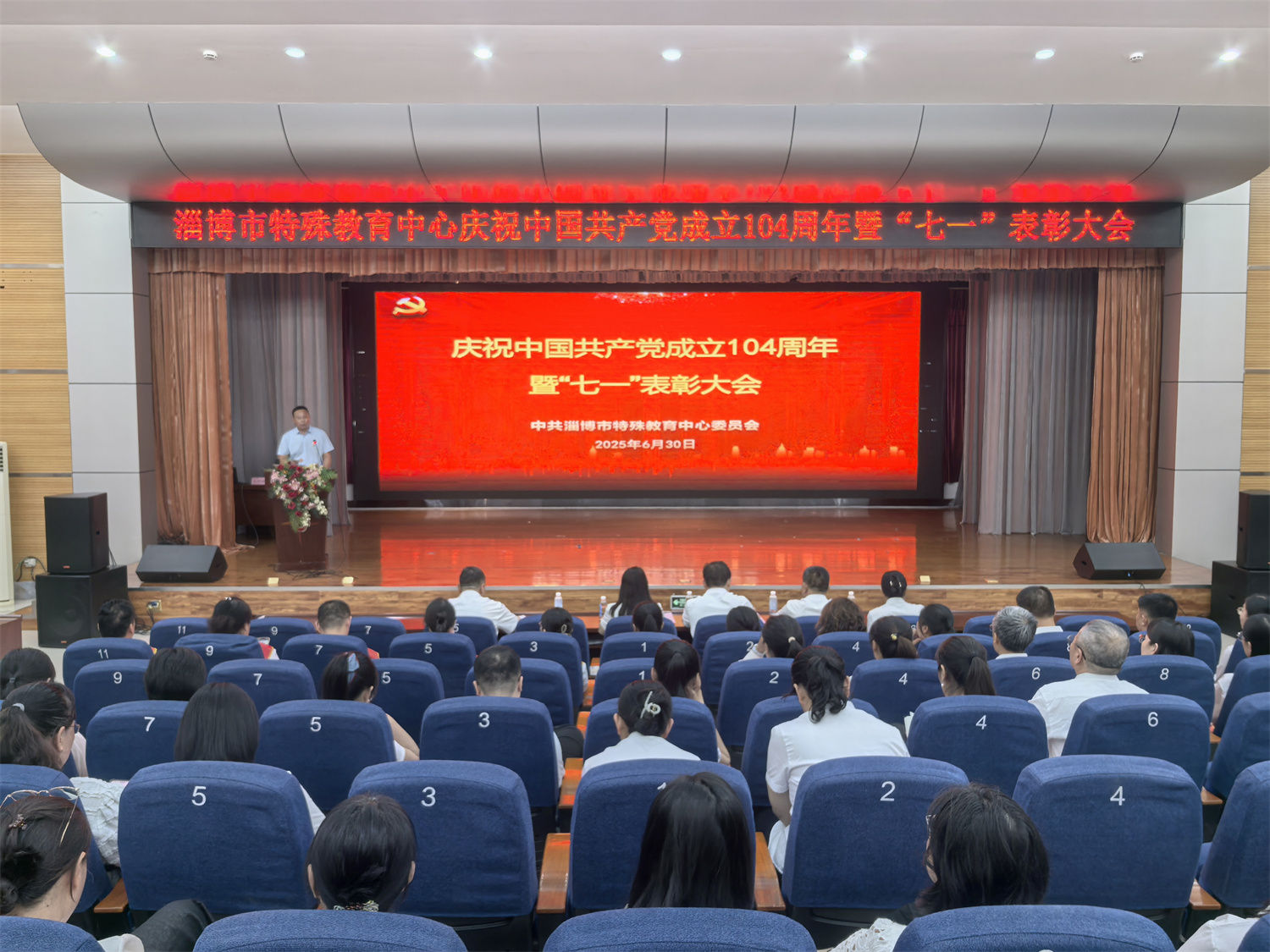 6月30日,淄博市特教中心在博愛禮堂舉行慶祝中國共產(chǎn)黨成立104周年暨“七一”表彰大會。會議由學(xué)校黨委副書記李善軍主持,全體黨員參加。