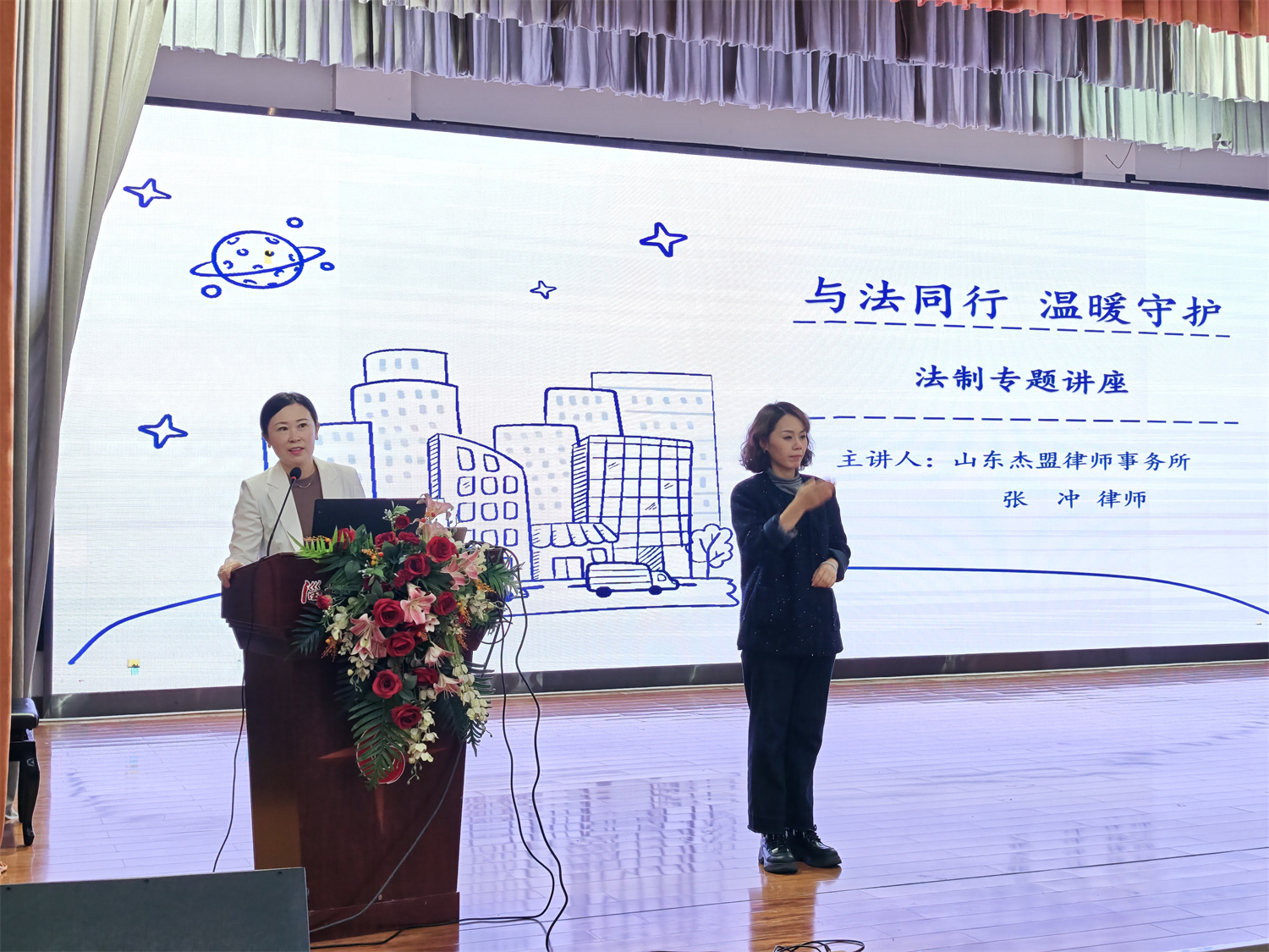 ?為深入推進法治校園、平安校園建設,切實增強學生的法治觀念與自我保護意識,營造安全、和諧、文明的育人環(huán)境,近日,淄博市特教中心邀請山東杰盟律師事務所高級合伙人、山東理工大學法學院兼職教授張沖走進校園,為師生進行了一場法治教育宣講活動。