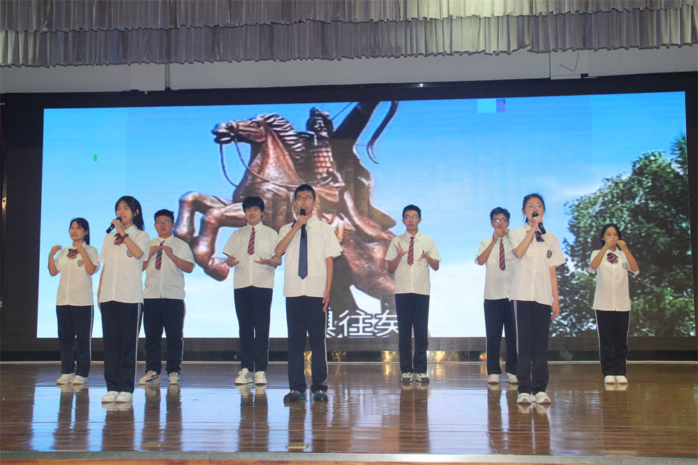 八、九、高一年級的《我驕傲,我是中國人》節(jié)奏鏗鏘,堅定的手勢與明亮的眼神,將深沉的家國情懷表達(dá)得真摯而動人。